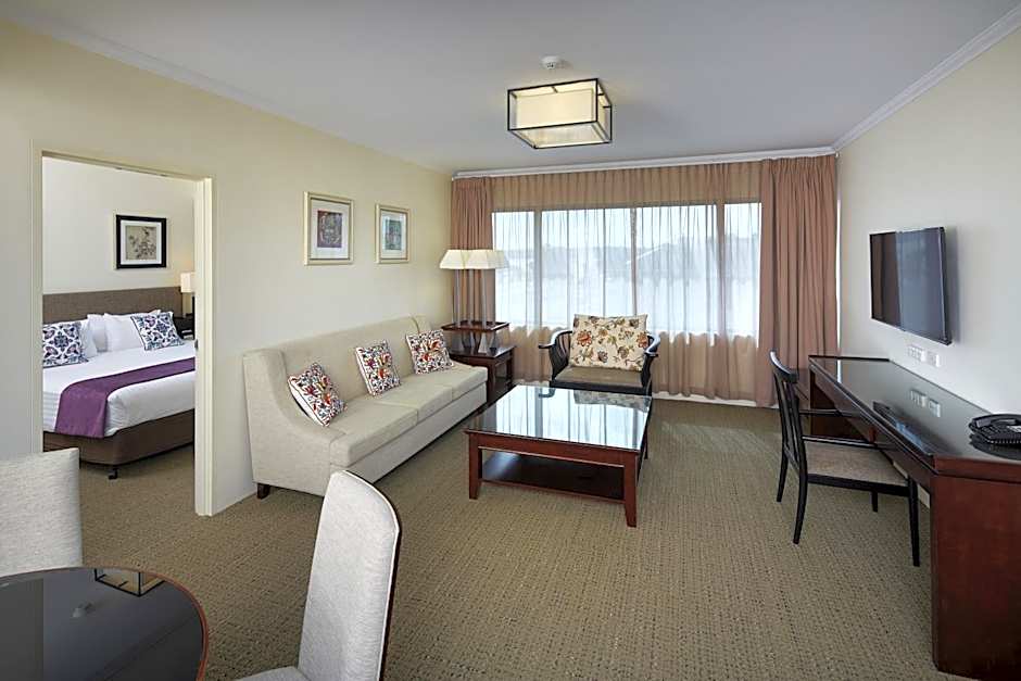 Spacious 44sqm fully self contained and serviced daily. The apartment features a living area with lounge, dining table/chairs, 42-inch LCD TV with Foxtel, complimentary Wi-Fi access, fully equipped kitchen with oven, microwave, dishwasher, mini-bar stocked with some free items, laundry facilities with washing machine/dryer. The private bedroom features a king bed and private bathroom with spa bath. Most apartments offer views overlooking the neighboring park or tropical pool. Park or pool views are on request and subject to availability.